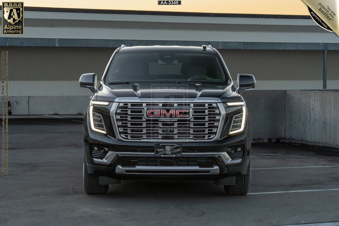 Installed options and accessories for added safety on this armored GMC Yukon Denali XL include: