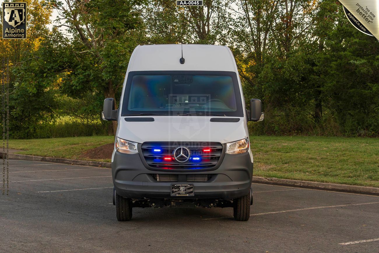 El furgón táctico SWAT/APC Alpine Armoring POINTER® es un vehículo altamente especializado diseñado para equipar a las fuerzas del orden y al personal militar con la protección necesaria y las capacidades tácticas que necesitan para llevar a cabo misiones seguras y eficaces. Construida sobre el chasis Sprinter de Mercedes-Benz, nuestra furgoneta táctica POINTER® a prueba de balas tiene un potente motor turbodiésel y un sistema de suspensión reforzado que le permite circular por terrenos accidentados y realizar persecuciones a alta velocidad.
